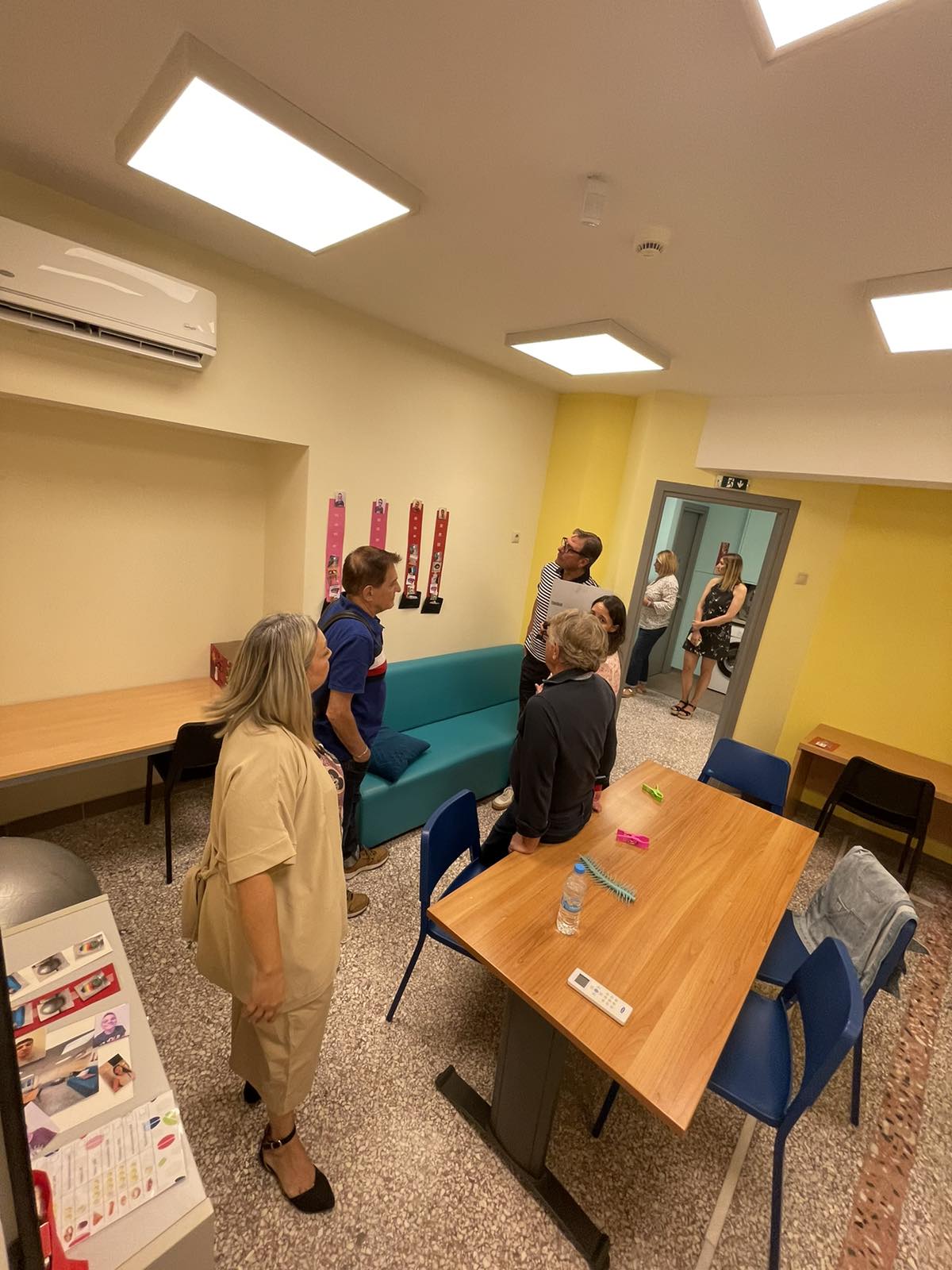 Ο Πρόεδρος Fabrice BEAUMONT μαζί με δύο μέλη της οργάνωσης Enfance Handicaps Val d’Oise ξεναγήθηκαν στα εργαστήρια του Κέντρου Ημέρας Εφήβων και Ενηλίκων, συνομίλησαν με στελέχη και ωφελούμενους και κατέγραψαν σημαντικές ανάγκες παραϊατρικού και εκπαιδευτικού υλικού.