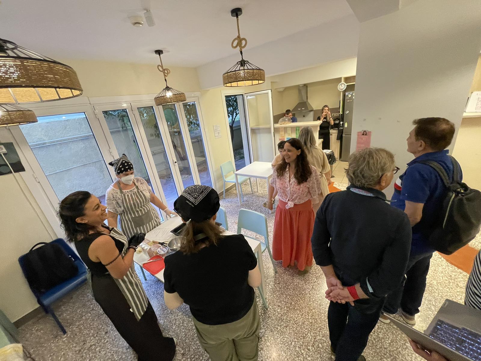 Προσφέρθηκε ζεστός καφές, χειροποίητα κριτσίνια, μπισκότα και ζεστά ζυμαρικά, φτιαγμένα από τους ωφελούμενους του εργαστηρίου της κουζίνας.