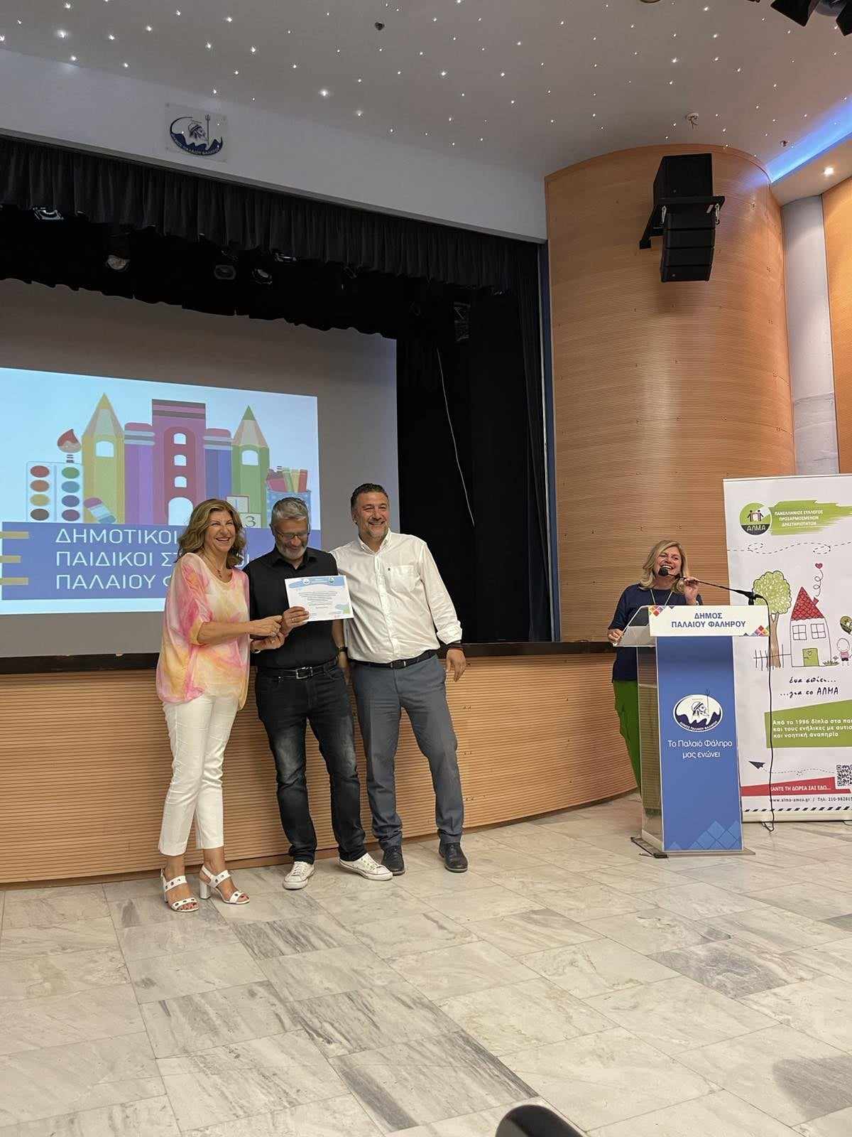 Τα διπλώματα απονεμήθηκαν στους συμμετέχοντες, και το λόγο στο βήμα πήραν η Πρόεδρος του Συλλόγου ΑΛΜΑ, κα Κατερίνα Γιαννακοπούλου, ο Δήμαρχος Παλαιού Φαλήρου, κος Γιάννης Φωστηρόπουλος, η κα Μαίρη Τρύφων, Πρόεδρος των Παιδικών Σταθμού Παλαιού Φαλήρου, η κα Αλίκη Παναγιωτάκου, Λογοθεραπεύτρια στο Σύλλογο ΑΛΜΑ και εισηγήτρια του σεμιναρίου, και ο κος Γεράσιμος Ρούσσος, Εργοθεραπευτής, Σύμβουλος Ψυχικής Υγείας, και εισηγητής του σεμιναρίου.