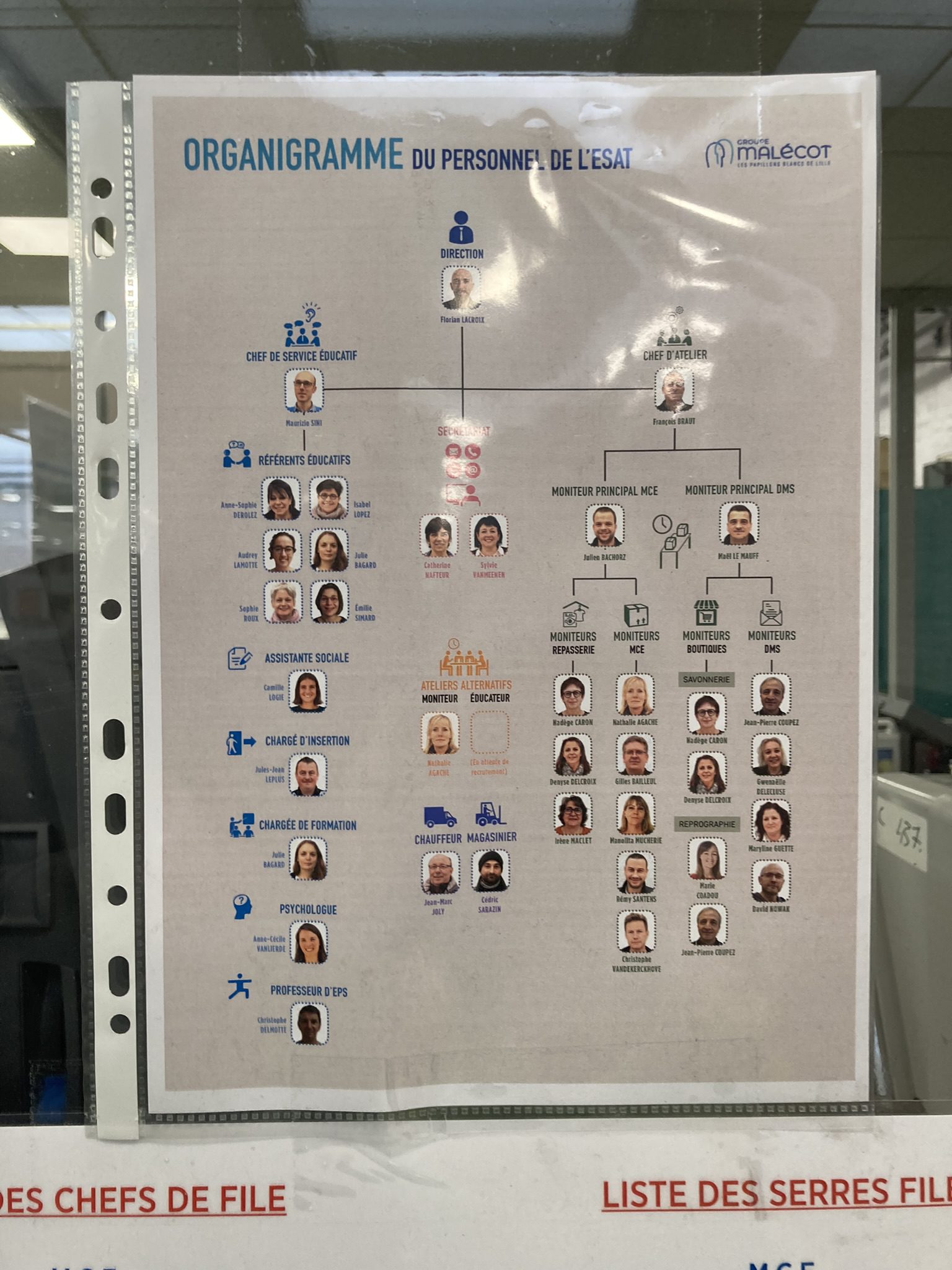 Οι φιλόξενοι Γάλλοι εταίροι μας, μας ξενάγησαν επίσης σε πολλές και ποικίλες στεγαστικές δομές και εργαστήρια επαγγελματικής κατάρτισης του φορέα. Στα εργαστήρια επαγγελματικής κατάρτισης του φορέα, οι ωφελούμενοι έχουν την ευκαιρία να εκπαιδευτούν σε διάφορες ειδικότητες: ως υπάλληλοι διοικητικών εργασιών, χειριστές βιομηχανικών συστημάτων, υπάλληλοι προετοιμασίας παραγγελιών (στο πλαίσιο ανάθεσης έργου από συνεργάτη της Nespresso), χειριστές επαγγελματικού εξοπλισμού καθαριότητας, υπάλληλοι εστίασης (catering, ζυθοποιία, εστιατόριο γρήγορου φαγητού), υπάλληλοι φροντίδας υφασμάτινων ειδών ( χρήση επαγγελματικού εξοπλισμού για καθάρισμα και σιδέρωμα), υπάλληλοι αποθήκης και υπάλληλοι τυπογραφείου.