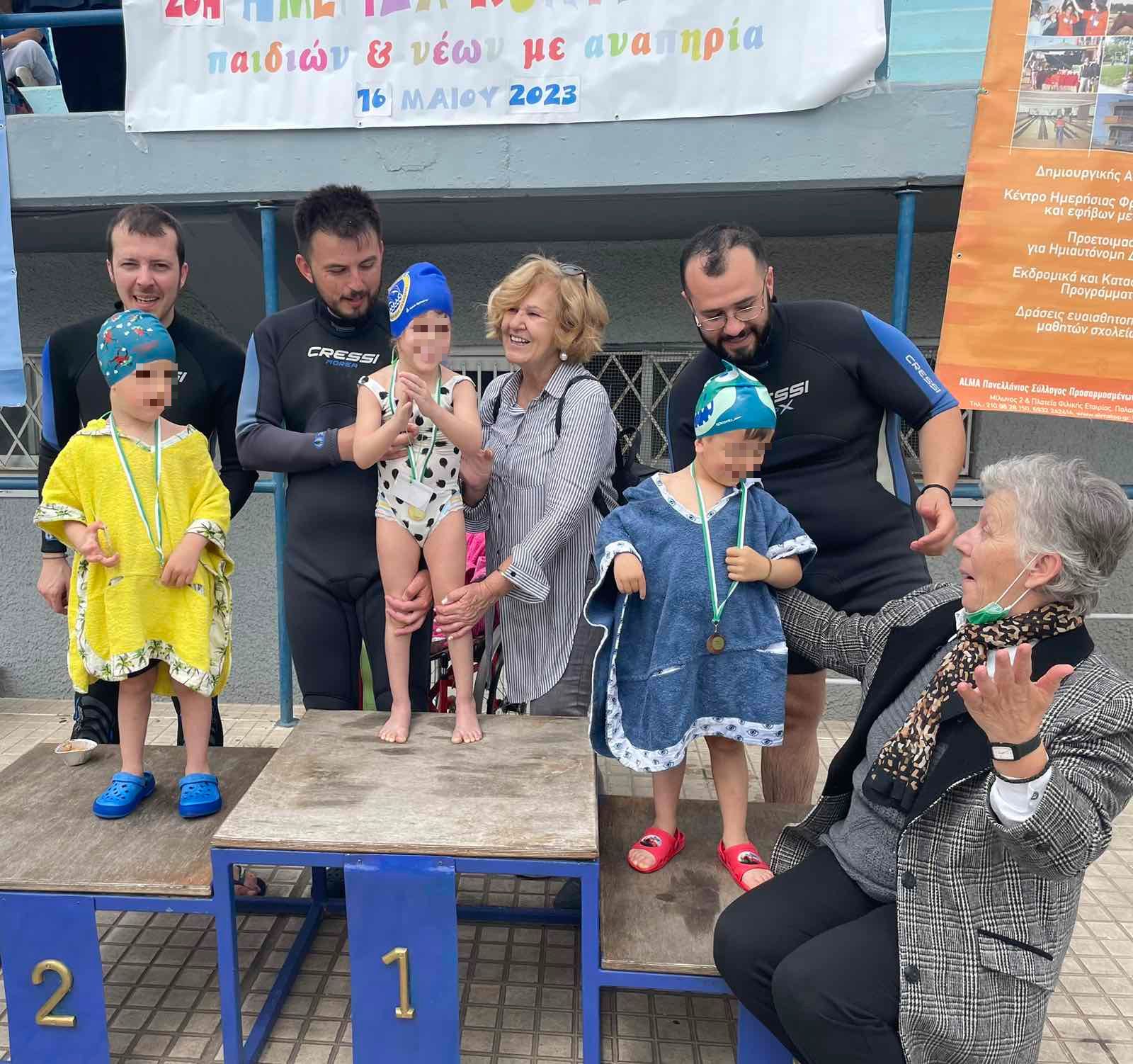 Ευχαριστούμε θερμά για την πολύτιμη βοήθεια τους για την ομαλή διεξαγωγή της ημερίδας μας: την Πανελλήνια Σχολή Ναυαγοσωστικής, τα ΤΕΦΑΑ ΑΘΗΝΩΝ – ειδικότητες Κολύμβησης και Προσαρμοσμένης Κινητικής Αγωγής, το «Χαμόγελο του Παιδιού», τον Αθλητικό Όμιλο Π. Φαλήρου, και τον Σύνδεσμο Κριτών Κολύμβησης Αττικής. Σημαντική ήταν και η παρουσία του αγαπητού γιατρού μας, κου Γιάννη Μπίτσικα.