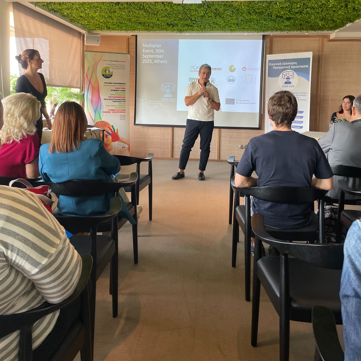 Με επιτυχία ολοκληρώθηκε η Ημερίδας Ενημέρωσης (Multiplier Event) του έργου eVeR safe προγράμματος Erasmus+ KA220-ADU Συμπράξεις συνεργασίας στον τομέα της εκπαίδευσης, που διοργανώθηκε από το ΑΛΜΑ, σήμερα Τρίτη 30 Σεπτεμβρίου, στο Coral Athens Hotel στο Παλαιό Φάληρο.